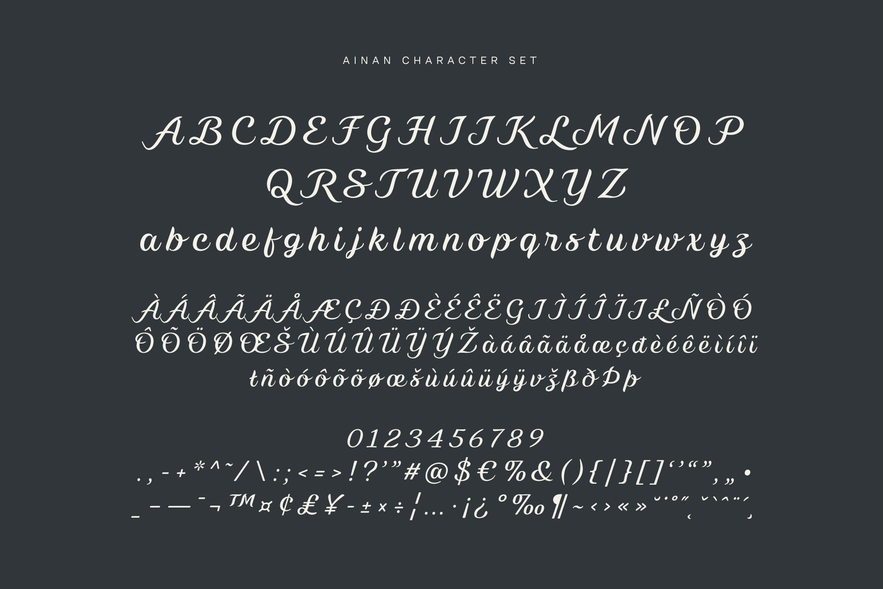 Ainan is a highly versatile script font that can add a touch of elegance and sophistication to any design. Its refined and graceful style makes it a valuable addition to any designer’s font library. Its soothing and feminine nature makes it an excellent choice for specific design and creative audience and also for a broader audience.