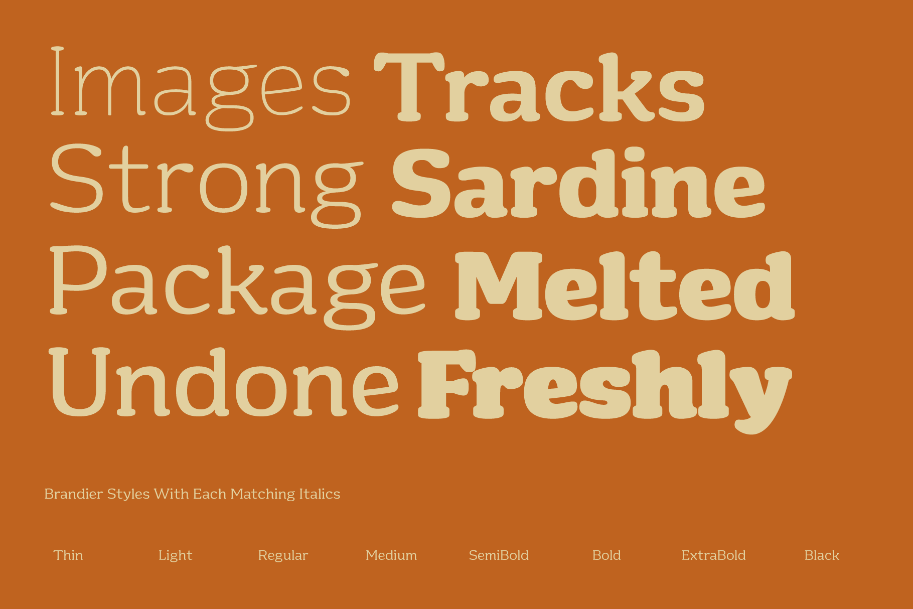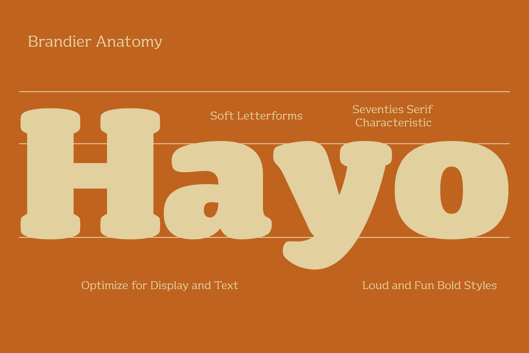 Brandier is soft serif fonts embody the nostalgic typographic styles of the seventies with soft edges and bold, captivating heavy weight designs. Infused with warmth and playfulness, its large x-height and balanced regular and italics styles ensure a delightful reading experience. Ideal for diverse applications including Text and Display usage, Logo creation, Website design, Brand Identity development, and Product Packaging, catering to a broad spectrum of Graphic Design and Creative needs.