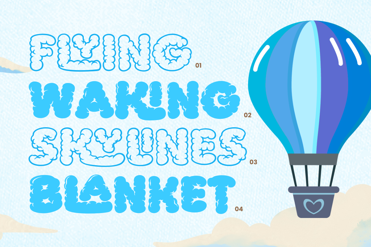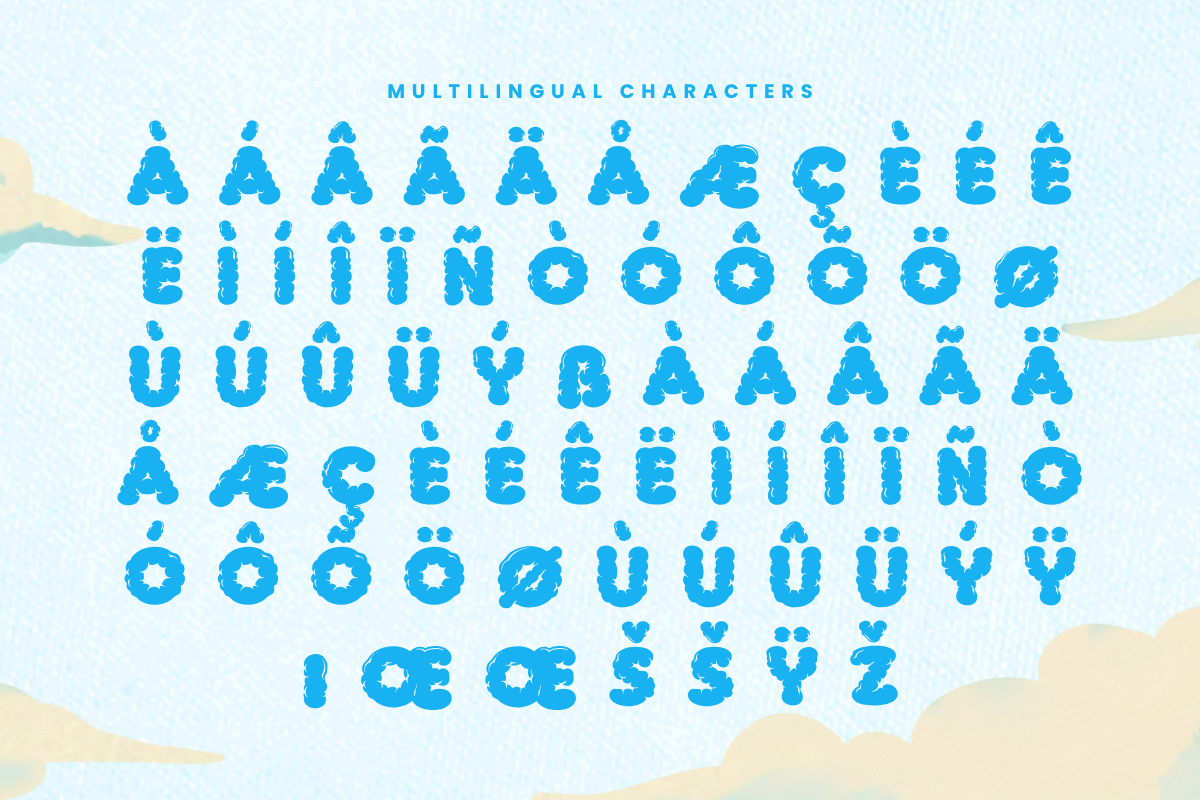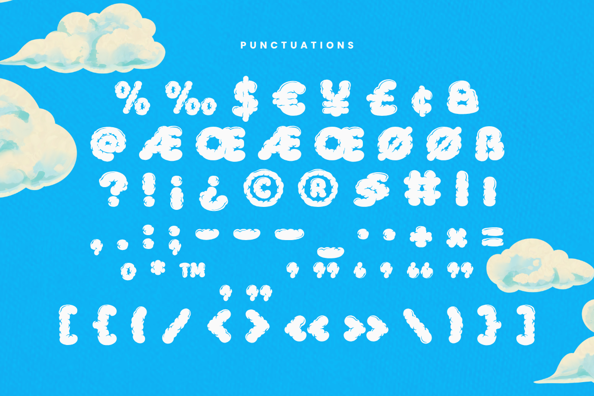 Cloude is a playful display typeface inspired by the soft, rounded forms of clouds, giving each character a whimsical and friendly appearance. Designed in two distinct styles—Normal and Outline—this font offers versatility for creating light-hearted and imaginative visuals. Its gentle curves and airy shapes make Cloude especially fitting for children-themed designs, such as storybooks, toys, posters, logos, and educational materials, adding a sense of fun and wonder to any project.