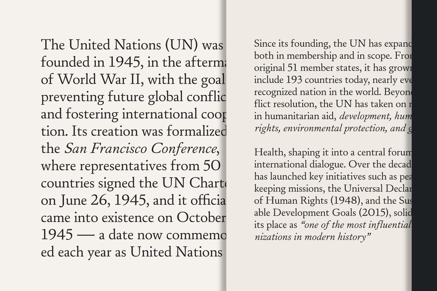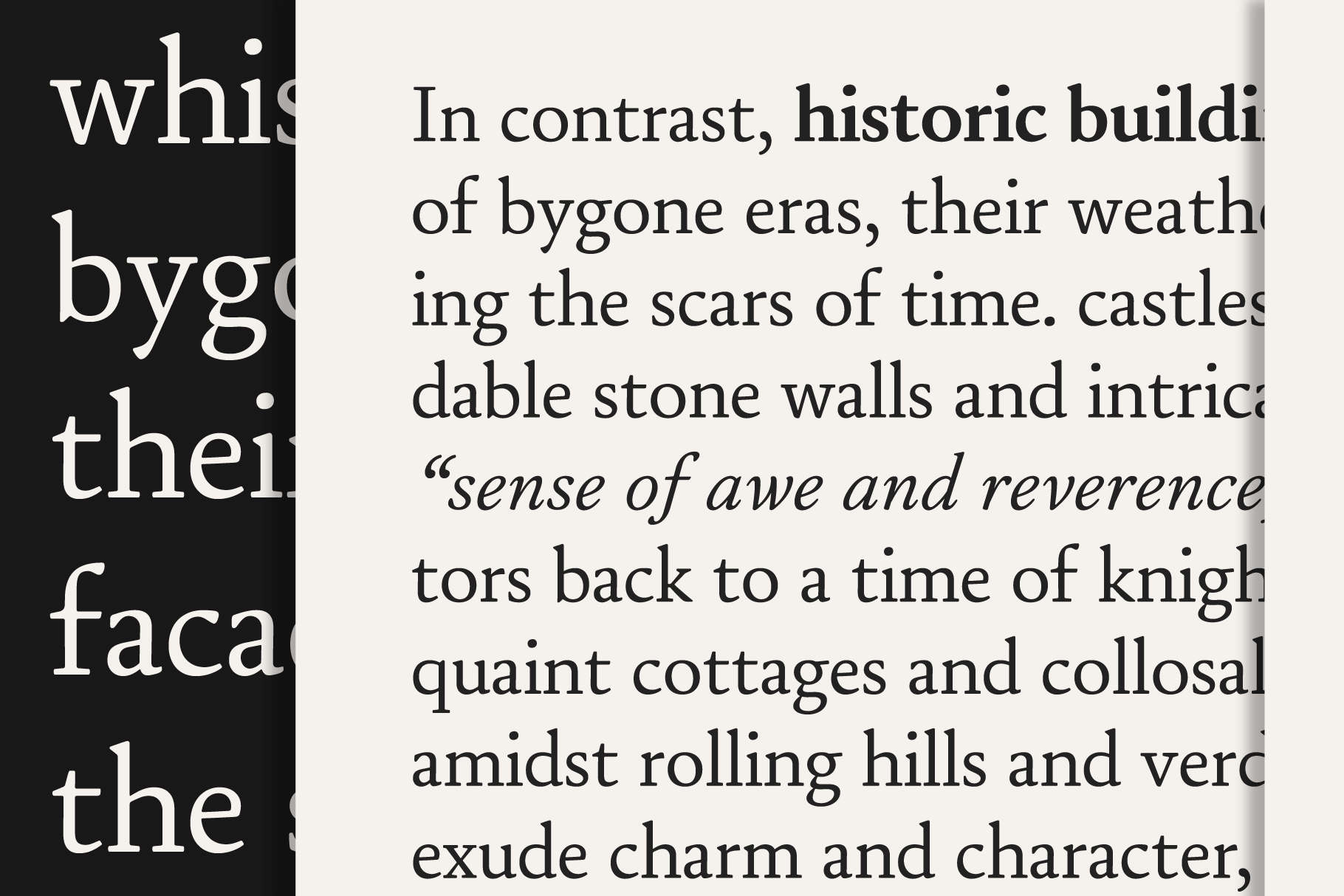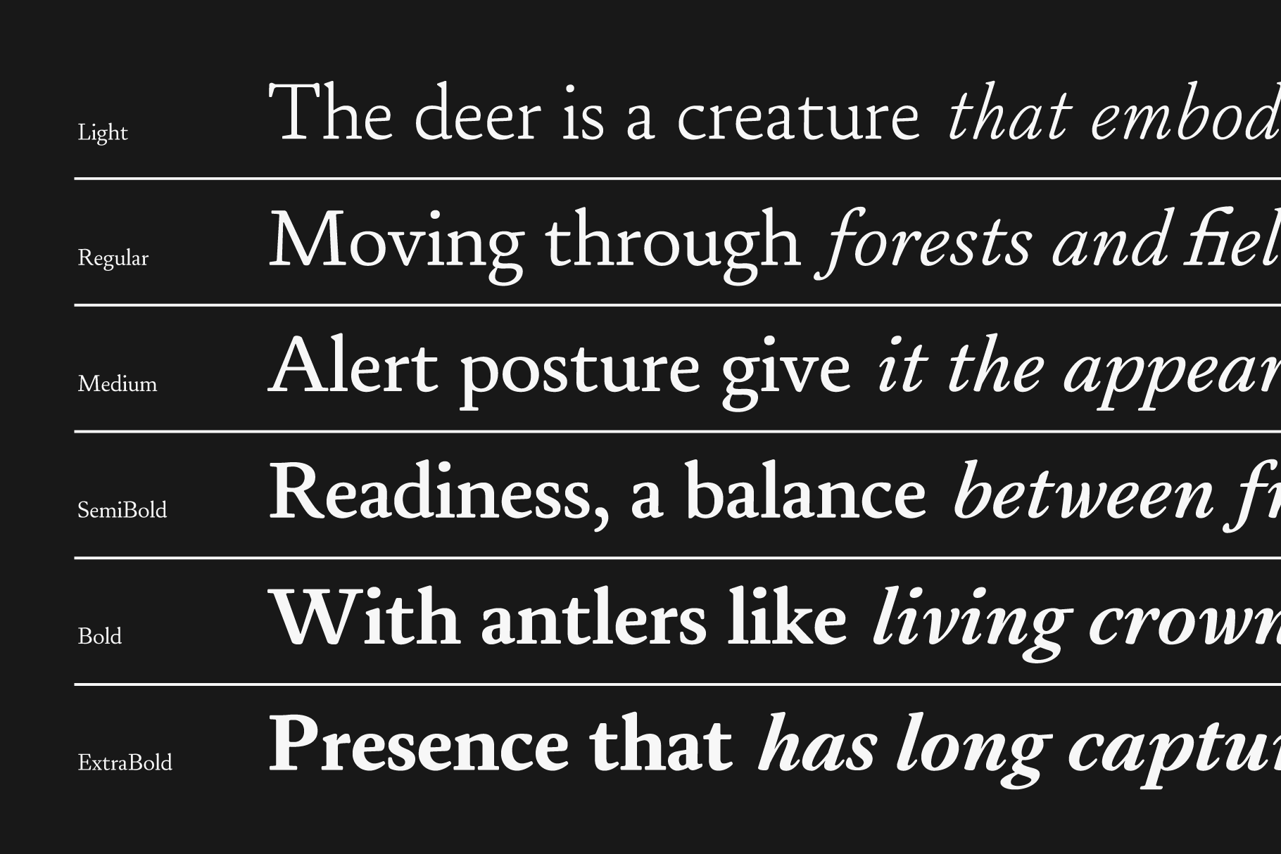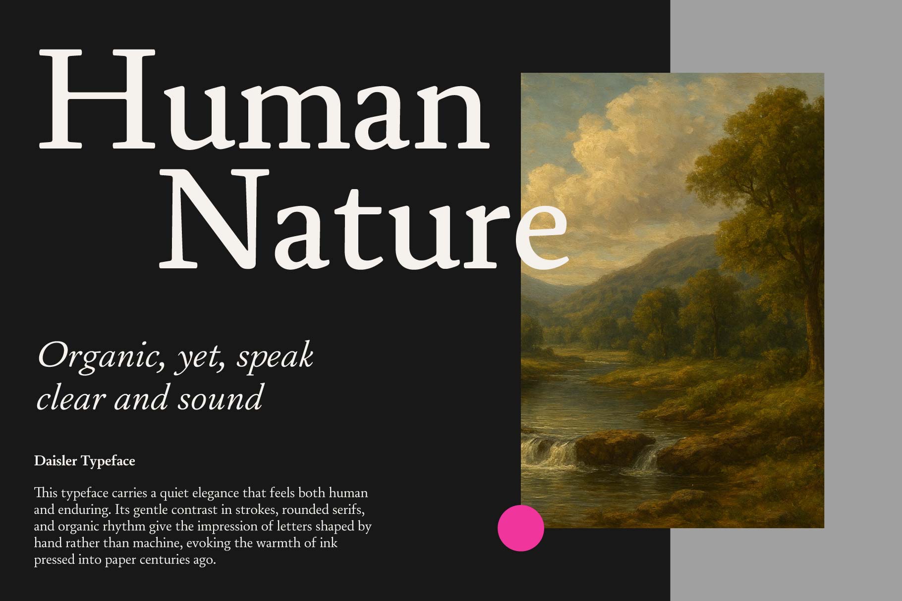 Daisler is a serif typeface crafted specifically for long-form reading. Designed with a strong emphasis on legibility and readability, it draws inspiration from humanist serif traditions found in classics like Garamond and Caslon. While it carries their warmth and calligraphic influence, Daisler introduces a more neutral and rational construction, resulting in a balanced, contemporary text face.