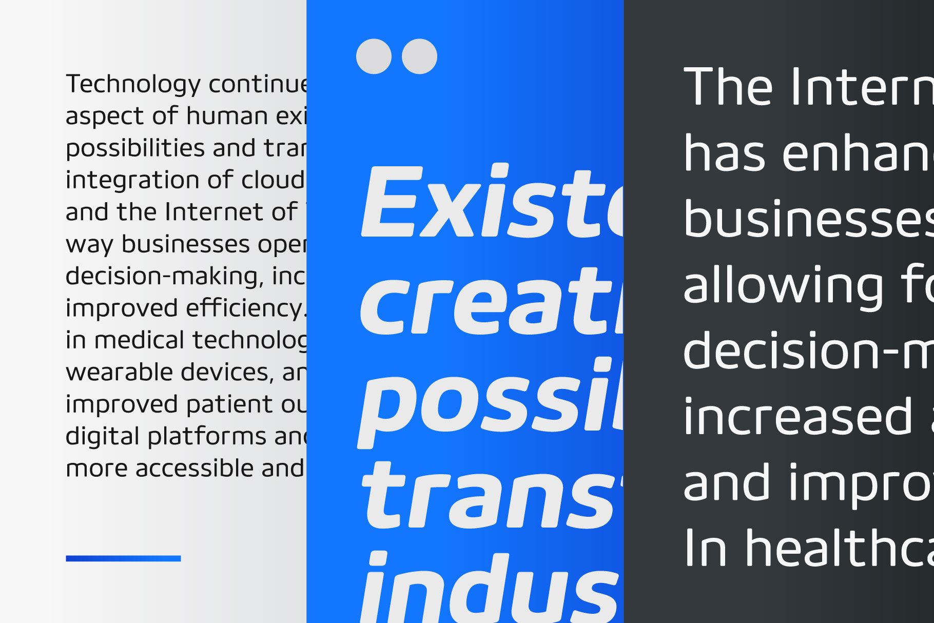 Digiva is a spurless sans font family known for its clean and neat design. The family includes 8 styles, ranging from thin to black, with each matching obliques, making it versatile for a wide range of uses. Perfectly suited for futuristic, digital, and technology-themed projects, it also fits well with corporate, contemporary, and functional design. Ideal for display, large sizes, titles, headers, websites, brand identities, or text, paragraph, body copy, web or print article, product packaging, and various graphic design applications, Digiva brings a modern and professional touch to any creative work.