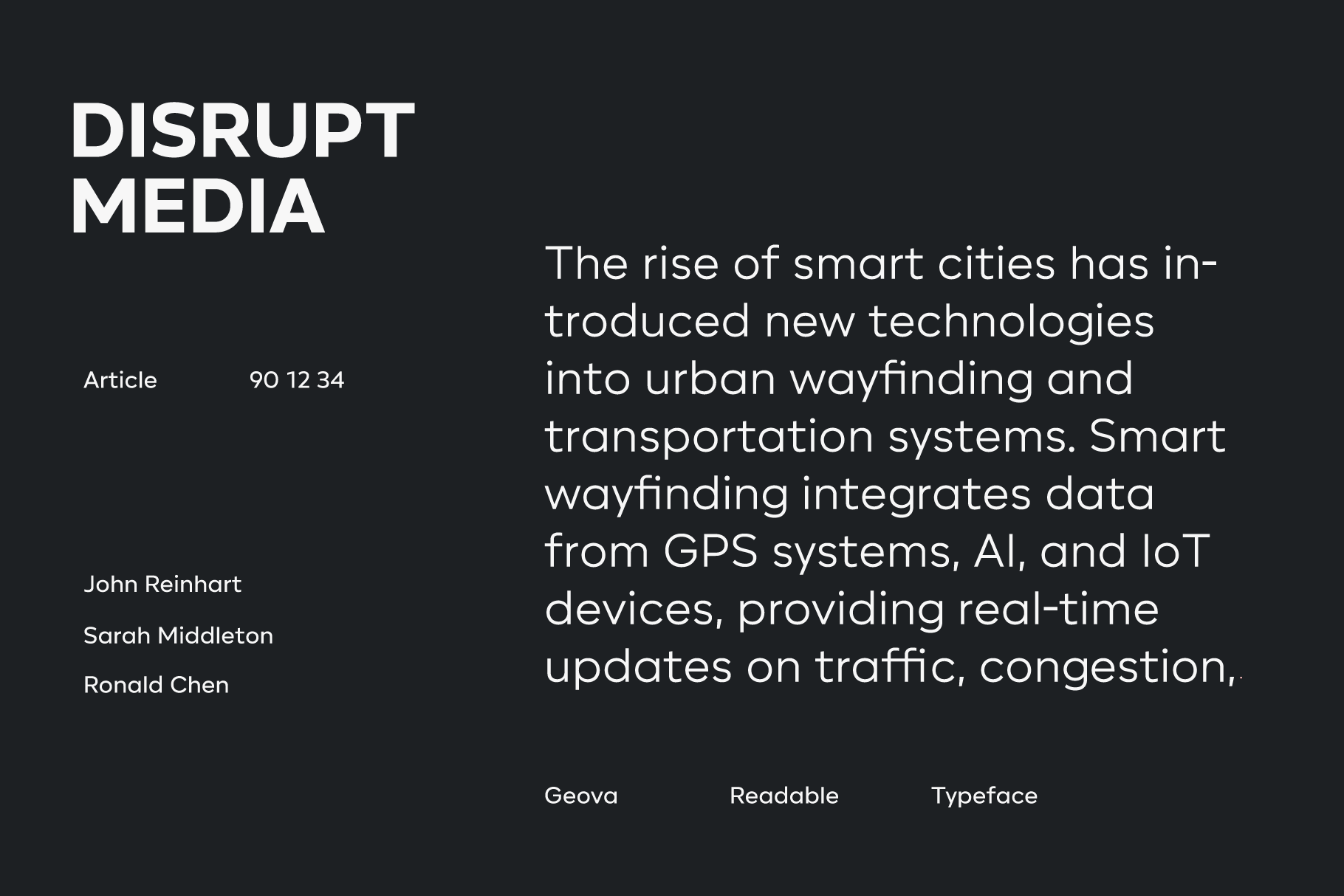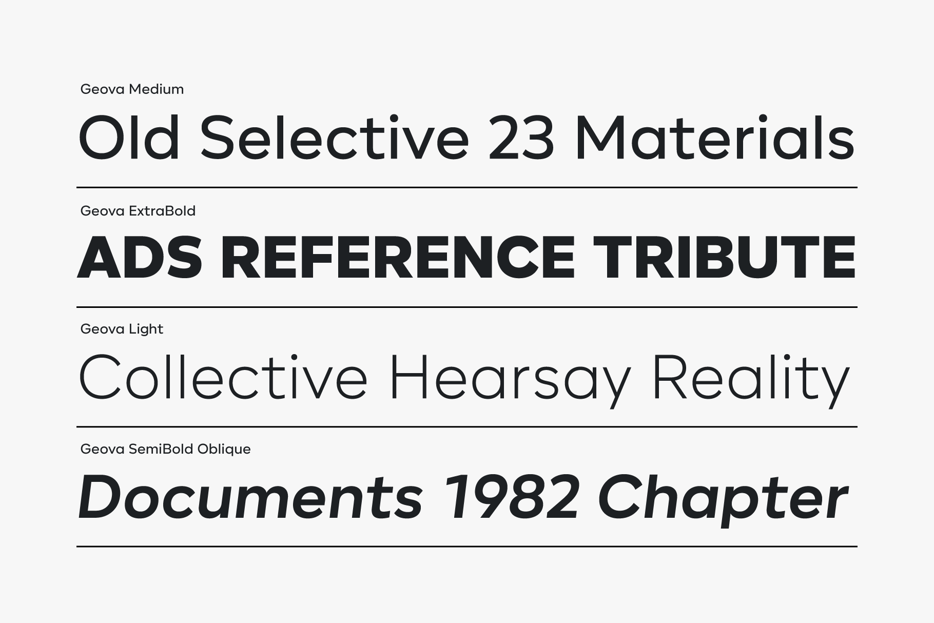 Geova is a geometric sans font family with a humanist touch in its letter proportions, offering a clean and versatile design that works seamlessly for both display and text. Its adaptability makes it suitable for a variety of design themes, including corporate, enterprise, contemporary design, product, brand, and functional design. Perfect for use in large sizes, titles, headers, websites, brand identities, product packaging, and a broad range of graphic design and creative purposes, Geova’s balance of geometric precision and humanist warmth ensures it fits effortlessly into any project.