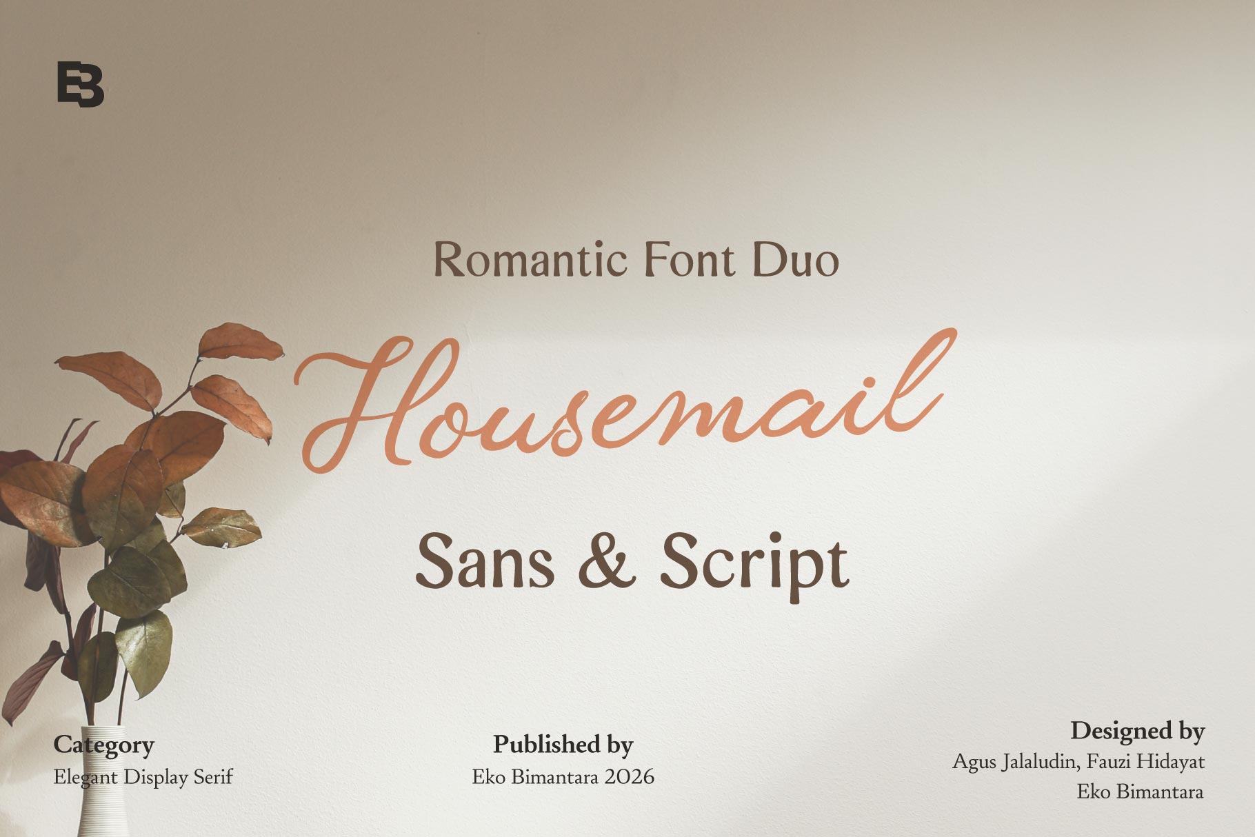 Housemail is a romantic script font blended with a rough handwritten sans font duo, creating a warm and personal feel with a touch of vintage charm. Its natural strokes and slightly imperfect texture give the impression of heartfelt letters and nostalgic notes, making it perfect for romantic and vintage-themed designs. Designed to be both expressive and readable, Housemail works beautifully for branding, websites, packaging, quotes, and creative projects that seek an emotional and human touch. This font brings warmth, intimacy, and timeless appeal to every composition.