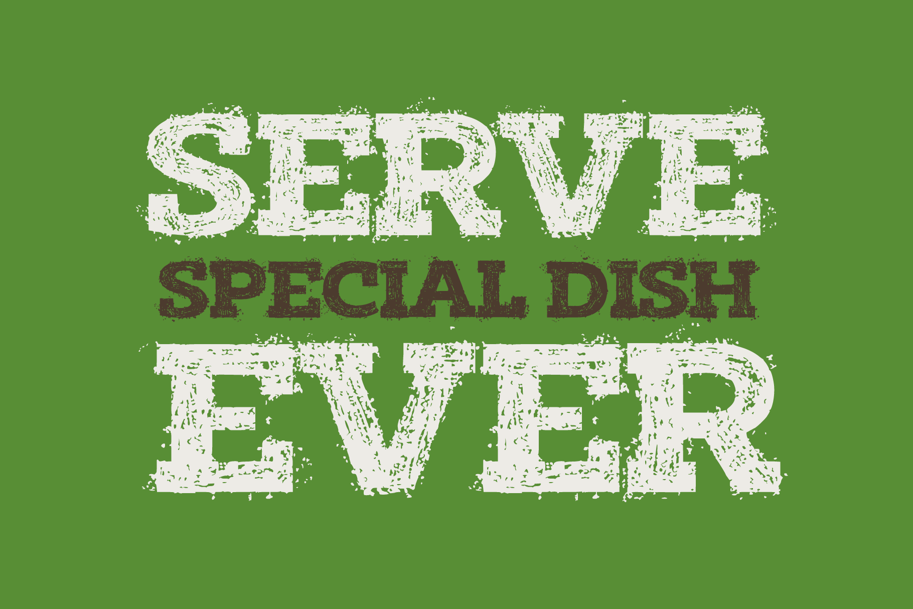 Ranch Mails is a bold, all-caps vintage display font characterized by its rough and raw aesthetic. Perfect for evoking a rustic, old-style charm, it fits themes related to food, product branding, and vintage design. Its rugged personality is ideal for large-size displays, titles, and headers, making it a great choice for brand identities, product packaging, and broad graphic design projects with a rustic or raw edge. Ranch Mails brings a timeless, rugged look to any creative layout or design.