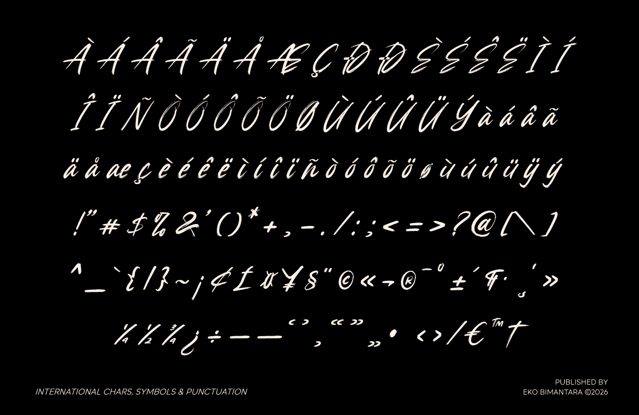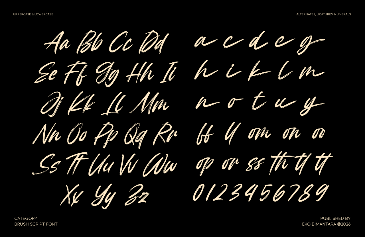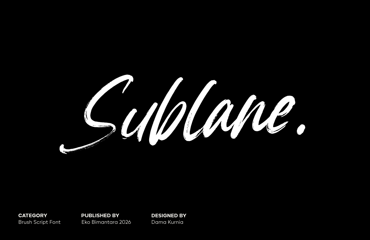 Sublane is a dynamic brush script typeface that captures the raw energy and expressive freedom of hand-painted lettering. Defined by its textured strokes, natural pressure variations, and slightly rugged edges, it conveys an authentic, handcrafted feel with a contemporary edge. The fluid letterforms and casual rhythm create a sense of movement and spontaneity, making it especially effective for branding, social media graphics, posters, and creative packaging. Sublane performs best in display settings, where its bold personality and artistic imperfections bring a striking, human touch to modern visual compositions.