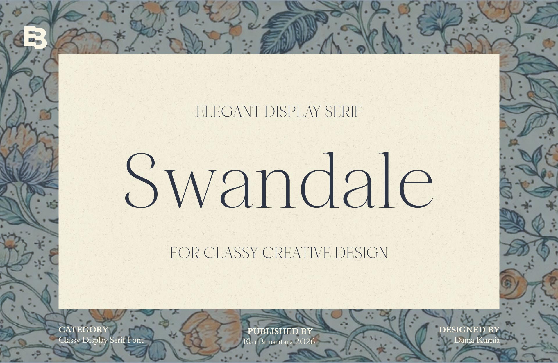 Swandale is an elegant display serif typeface crafted with high contrast strokes and a smooth, clean outline that expresses beauty and refinement. Its graceful letterforms bring feminine character while maintaining a professional and polished appearance. Designed with ample OpenType features, Swandale allows flexible and expressive typography for creative projects. This typeface is beautifully suited for headings, beauty products, websites, branding, editorials, and various design purposes that require an elegant and charming visual presence.